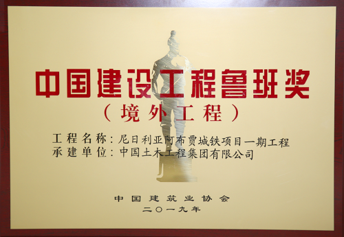 阿布賈城鐵獲得2018-2019年度中國建設工程魯班獎(境外工程)、